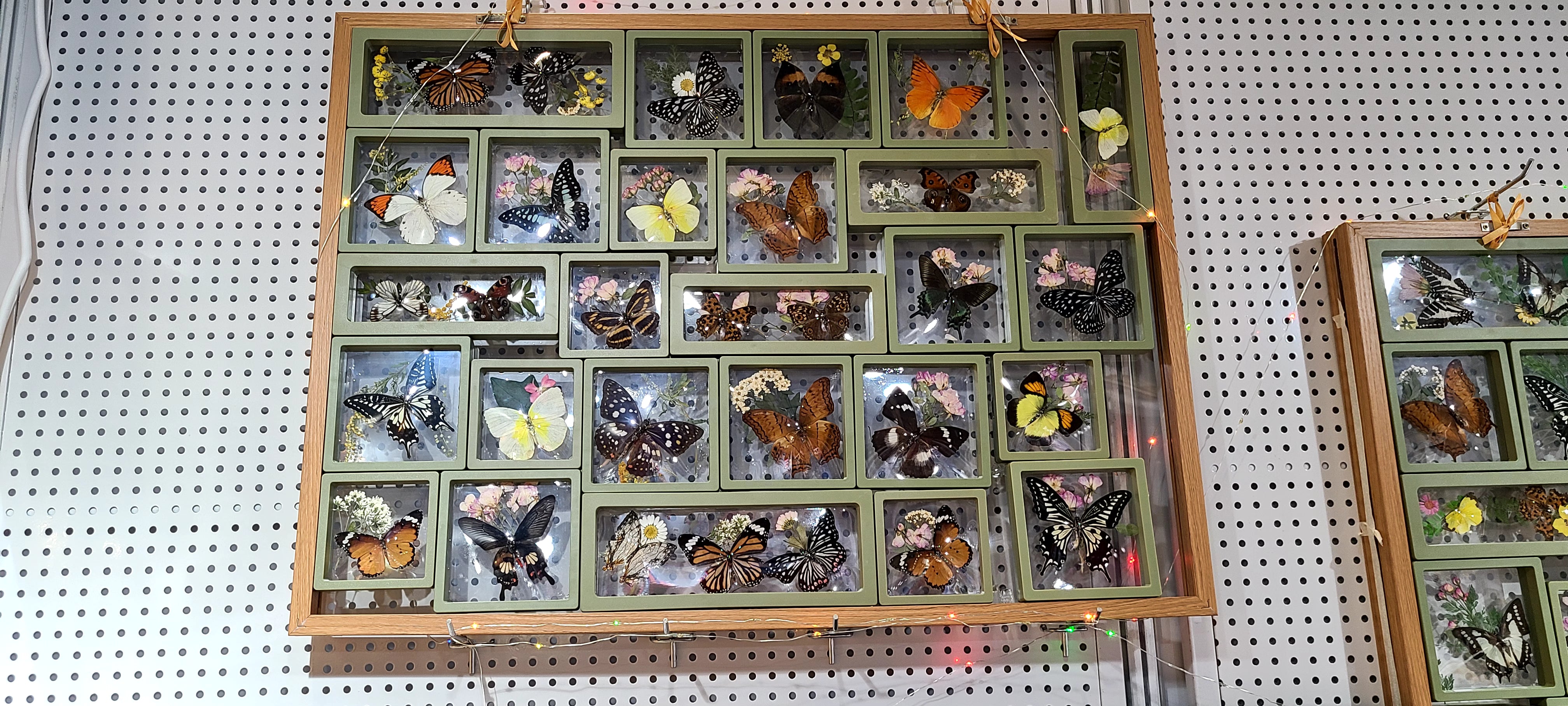Butterfles in Frame 180x70x20 mm³ ,230x90x20 mm³ ,90x90x20 mm³ ,110X110X20 mm³